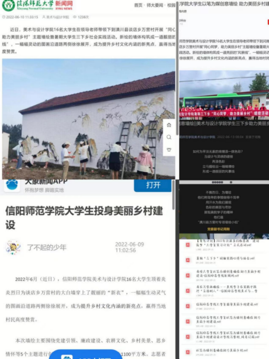 团支部要“在团言团”,中国共产主义青年团是中国共产党的后备力量,团支部要使团支部成员对共青团、共青团章程有一定的认识了解,要使团支部成员清楚如何才能做一名优秀合格的团员、优秀合格的团员干部,只有积极落实“三会·两制·一课”制度,突出思想政治要求,注重创新团支部工作方法和方式,才能切实提高团支部水平。同时我支部于2022年6月组织参与暑期三下乡“同心同梦,助力美丽乡村”墙绘活动,改善农村人居环境、建设美丽乡村、丰富农民群众文化生活,引领乡村文明新风尚。完成对信阳市潢川县万营村及周边乡镇2300平方的绘画改造,并被多家新闻媒体报道。