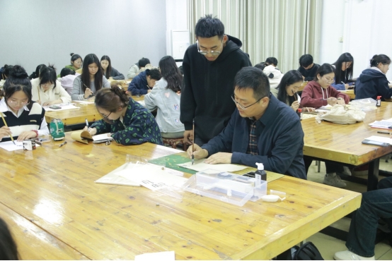 讲座进入高潮时,王培召老师走下讲台,与大家进行了亲密的互动。他逐一走到师生身边,仔细观察他们的书写姿势和笔画运笔,耐心地指出存在的问题,并给予具体的指导建议。在王老师的悉心指导下,大家纷纷表示受益匪浅,对书法有了更深入的理解和认识。