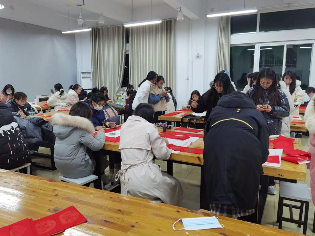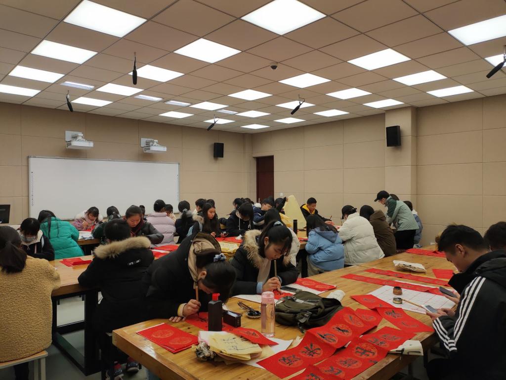 1月2日,beat365官网大学生书法爱好者协会于艺术楼216,217,306,308教室开展“泼墨书春风,书画暖人心”写春联活动。大学生书法爱好者协会会长赵梦柯及部分报名成员共同参与本次活动。