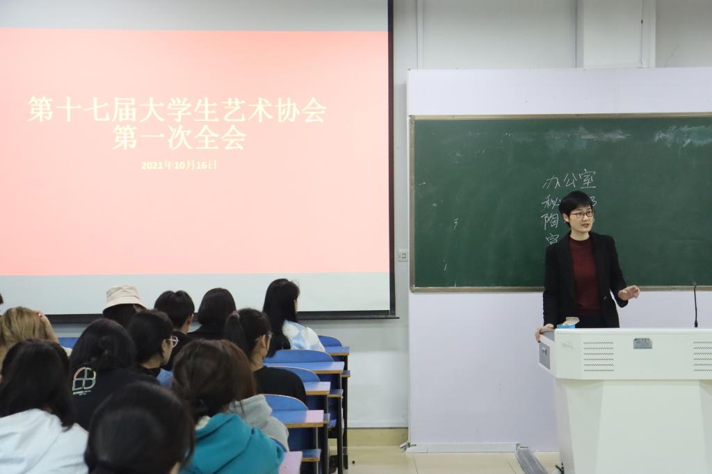 会议伊始,陈艺豪简明扼要的介绍了艺协的发展历史和未来发展方向,使大家对大学生艺术设计协会有了更深的了解。社团理事会各部门负责人讲述了本部门的工作职责和工作要点。赵梦珂代表团委向新加入社团的艺术爱好者们表示热烈的欢迎,希望大家能在社团发展自己的兴趣爱好,能够有大的收获。