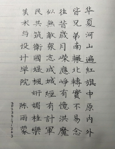 此次活动吸引了众多书法爱好者积极参与,共收到书法硬笔作品82幅,书法软笔作品46幅。参赛同学以饱满的热情、精湛的技艺,呈现了一幅幅优美的书法作品,作品题材丰富多样,充分反映出了时代风貌,也展示了自己对祖国的热爱之情和对书法艺术的独特演绎。经过评委们的认真评审,最终评选出一等奖5名,二等奖5名,三等奖10名。