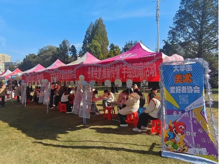 秋声悄然盈袖,11月17日至18日,大学生美术爱好者协会在一棵树广场举办“丹青绘梦,雅扇传情”手绘团扇活动。