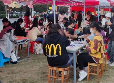 秋日暖阳,驱除寒意,同学们伏案作画,绘出心中色彩,青青草地,金黄杏叶,无处不是灵感。团扇背面写下的话语,或美好祝福,或希冀愿望,皆为心中所想。同学们通过团扇活动,步入文化之海,感受文化色彩,现场气氛热烈,直至夕阳落下,大家才依依不舍地离开活动场地。