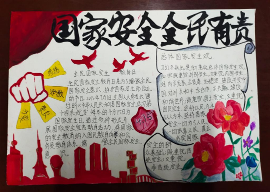 活动一经启动,便引起了同学们的热烈响应和广泛关注。众多同学踊跃报名,他们查找相关资料,充分发挥自己的创意和想象力,创作出了一幅幅内容丰富、形式多样的手抄报作品。这些作品不仅展现了同学们对国家安全的深刻理解和认识,也传递出他们维护国家安全、共筑和谐梦想的坚定信念。