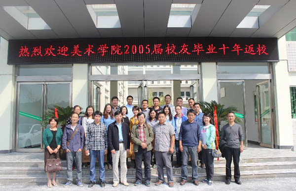 10月18日,在信阳师范学院建校40周年校庆来临之际,美术学院2005届校友在毕业十年后重聚母校,共话同学情,师生情,母校恩。信阳师范学院美术学院院长刘根货,党总支书记周子良,副院长张伟,党总支副书记李孝民,副院长邹东升,2005届授课老师及部分返校校友出席本次活动。