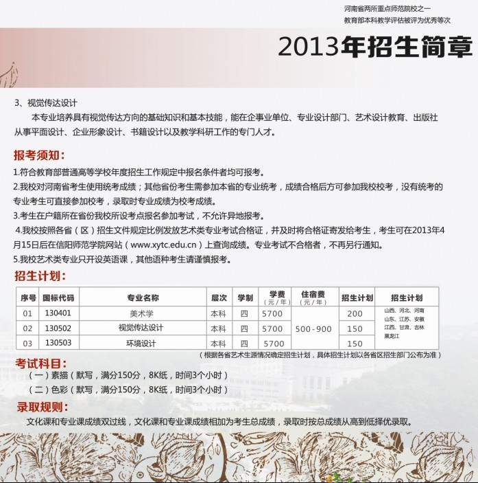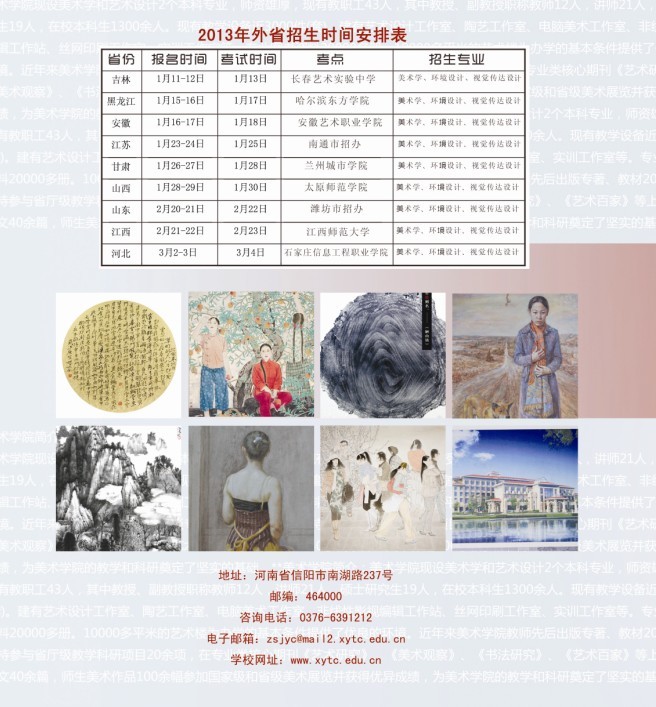 信阳师范学院美术学院2013年招生简章