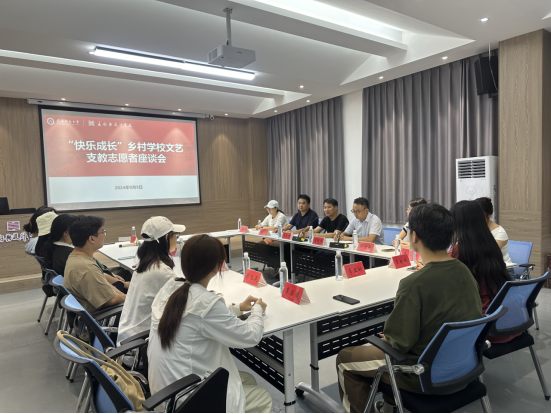 9月9日,在教师节即将来临之际,beat365官网在实训楼艺言堂成功举办了一场意义非凡的“快乐成长”乡村学校文艺支教志愿者座谈会。院长邹东升、院党委副书记周明成、辅导员郑波与已完成支教任务的4名志愿者和即将踏上支教新征程的8名新志愿者共聚一堂,分享经验,展望未来。
