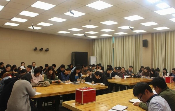 4月13日,beat365英国官方网站出席我校第四次党代会代表选举党员大会在艺术楼216召开。学校组织部副部长姜兴周、beat365英国官方网站副院长邹东升、张伟、李孝民,党委副书记杨轶中,党委委员刘文忠及全体在校师生党员共同参加了本次会议。会议由杨轶中主持。