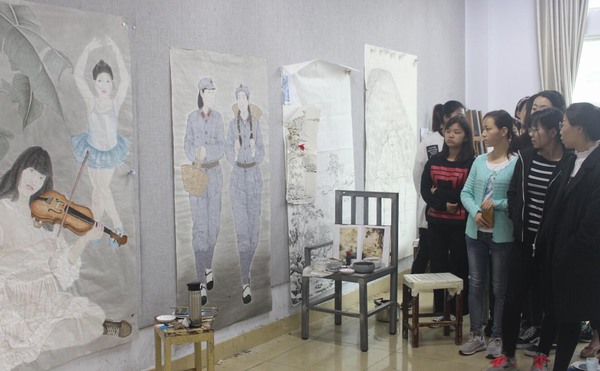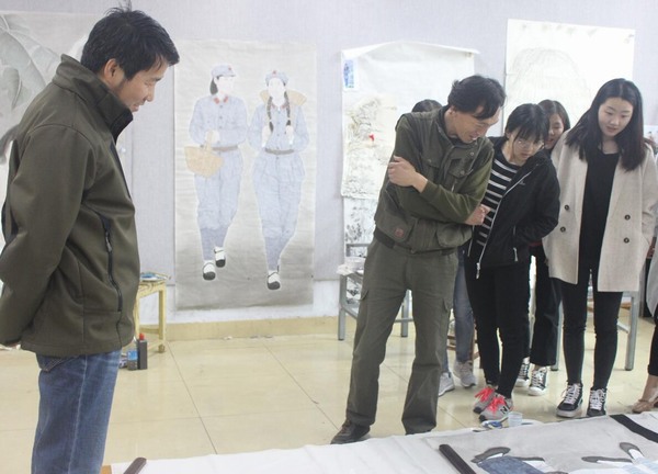 4月23日上午,应beat365英国官方网站邀请,著名画家范士轩先生在beat365官网四楼画室为本科生指导专业创作。