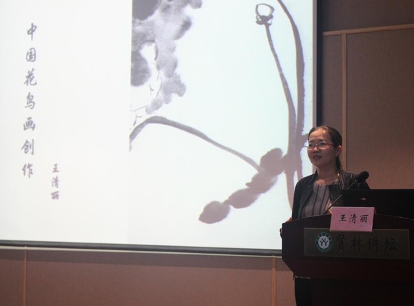 4月27日下午,应beat365官网邀请,景德镇陶瓷大学王清丽教授在贤林讲坛作了题为“中国花鸟画创作”的学术报告。beat365官网200余名师生共同聆听了报告,报告由副院长张伟主持。
