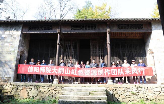 10月28-29日,信阳师范学院beat365英国官方网站大别山红色资源创作团队一行十八人赴信阳新县采风,为大别山红色主题的作品创作搜集艺术素材。创作团队首先参观考察了位于新县千斤乡东南部的“中原银杏第一村”----杨高山千年古银杏林,除了王洼古银杏群之外,这里有红二十八军战斗旧址和英雄人物刘名榜游击战争遗址,村内革命志士众多,是千斤乡红色革命的发源地。随后创作团队一行人参观考察了新县周河乡毛铺村,整个村落为彭氏家族居住,村民组保存了较完整的明清时期建造的民居院落,独特的自然条件和深厚的人文历史气息激发了大别山红色资源创作团队的创作灵感,为艺术创作提供了丰富的素材。