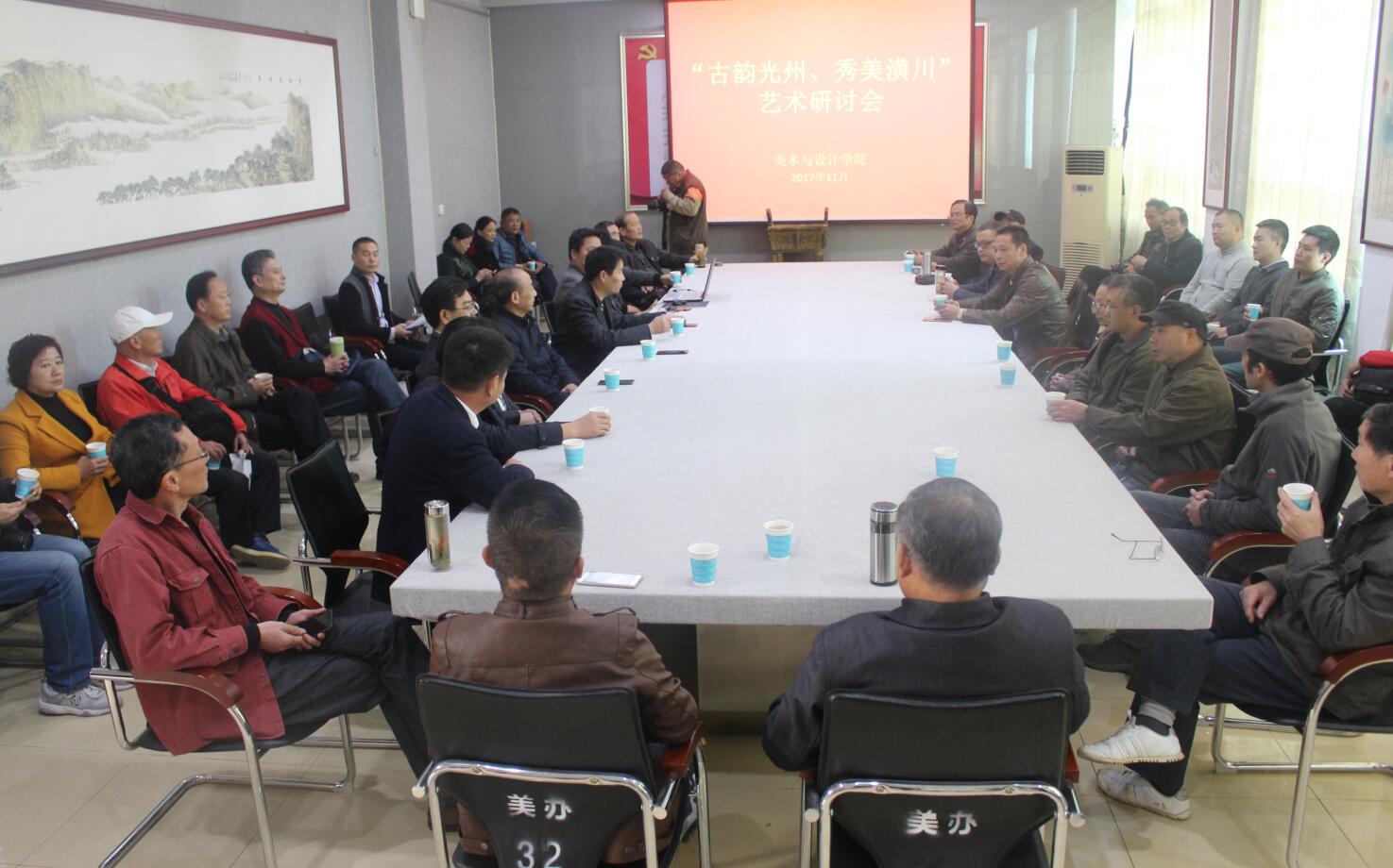 随后各位参展嘉宾于艺术楼二楼会议室召开了“古韵光州、秀美潢川”艺术研讨会。会议上,邹东升首先为各位领导嘉宾介绍了beat365官网的发展历史、基本情况及近些年的理论研究成果,他指出beat365英国官方网站将在后期的工作中,对淮河两岸的自然风貌及人文历史进行写生创作。陈志立发言时对beat365官网盛情邀请参加本次展览表示真诚的感谢,同时对于家乡的过去与现在表示深深的自豪,对信阳美术创作团队积极配合表示感谢,他表示此次画展的开办,加强了高校之间的合作交流,提升了潢川美术创作在美术界的影响力。张伟表示beat365英国官方网站要紧跟前沿学术动态与研究团队的方向,增强自身使命感,承担更多发展艺术事业的责任。