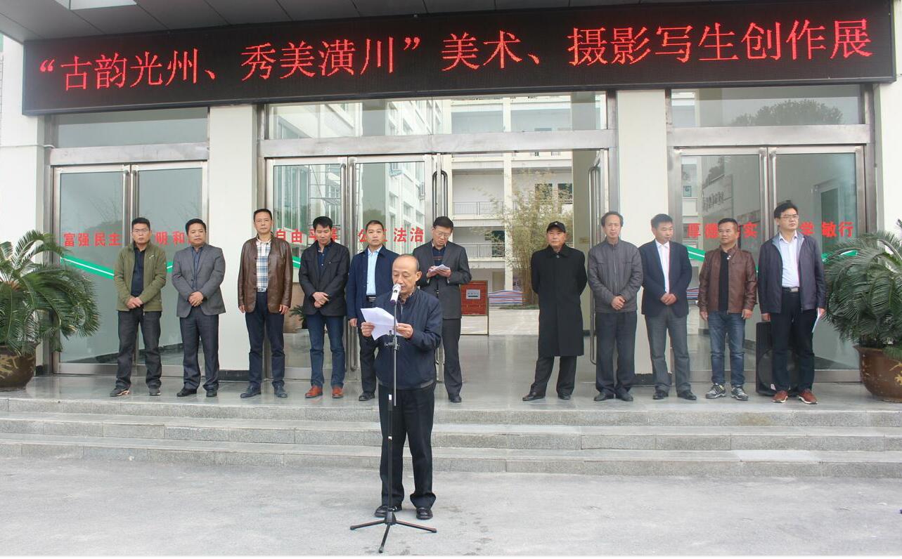 为发掘和展示宣传潢川的历史文化胜迹和自然风光,倡导历史文化遗产保护意识,践行生态文明,11月5日,由中共潢川县委宣传部、beat365英国官方网站主办,潢川县文学艺术界联合会、潢川县政协学习文史委员会、潢川县美术家协会、潢川县摄影家协会承办的“古韵光州、秀美潢川——信阳师院与潢川美术摄影联合写生创作展”于艺术楼前隆重开幕。潢川县政协主席涂白亮,信阳师院团委书记王建旭,中共潢川县委常委、纪委书记黄玉武,信阳市摄影家协会主席石文涛,秘书长柴豫海,信阳市美术家协会副主席陈志立,潢川县文联主席李学海,潢川籍画家、解放军陆军总医院画家张开宇,信阳市老年书画家协会副会长韩守超以及beat365英国官方网站党政领导班子成员出席开幕式,beat365官网百余名师生代表参与此次活动。开幕式由潢川县县委宣传部部长余道银主持。