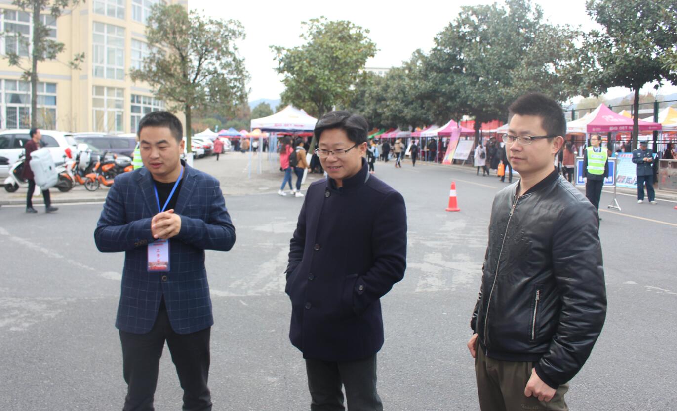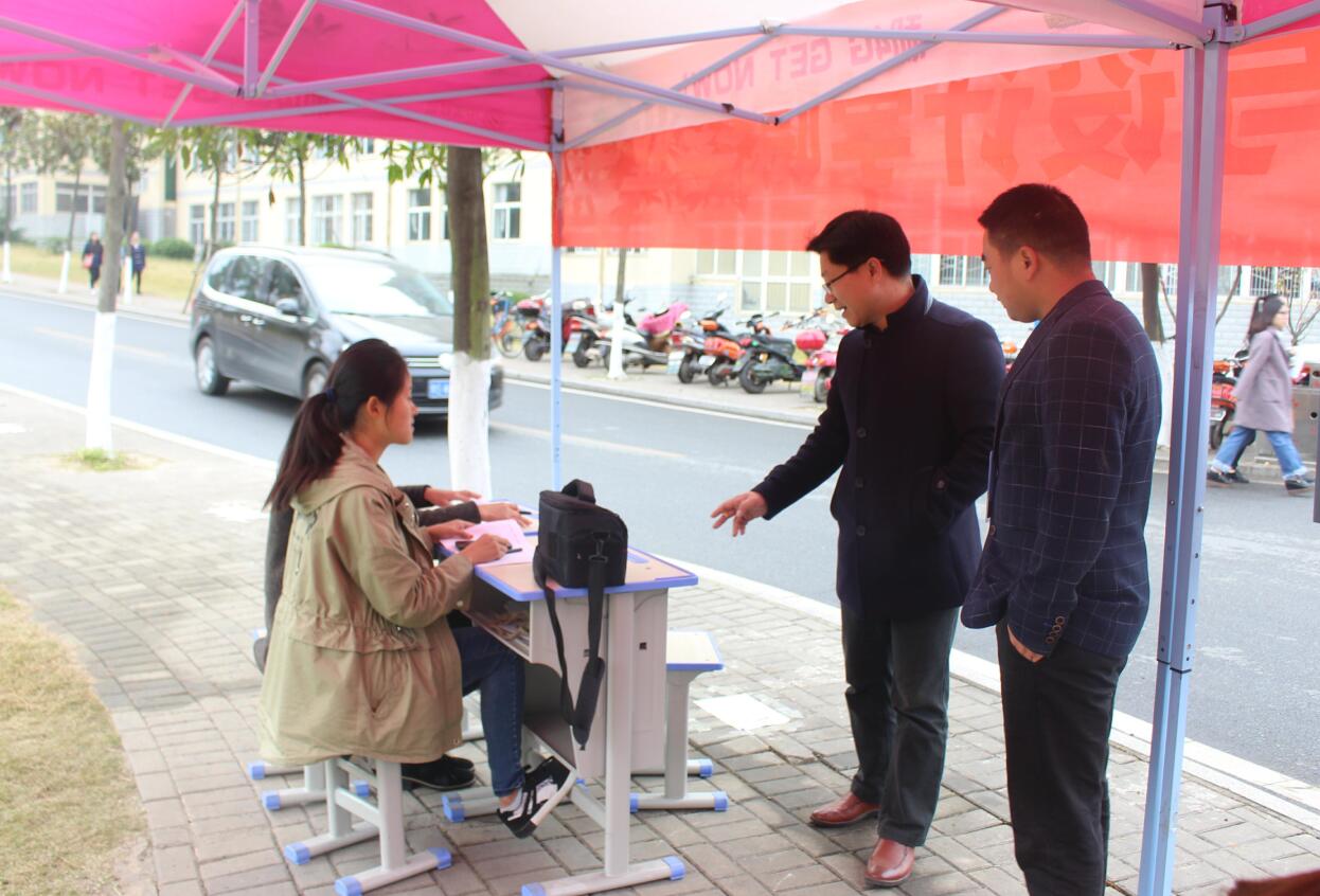 为及时向我校2018级毕业生提供最新就业信息,增加我校毕业生的就业机会,11月11日,信阳师范学院2018年冬季双选会在西篮球场热烈举行。beat365官网积极响应学校号召,在西操场设立值班棚,及时为beat365官网求职学子提供帮助。beat365官网党委副书记杨轶中带领辅导员张锐、郑波亲临现场指导活动。