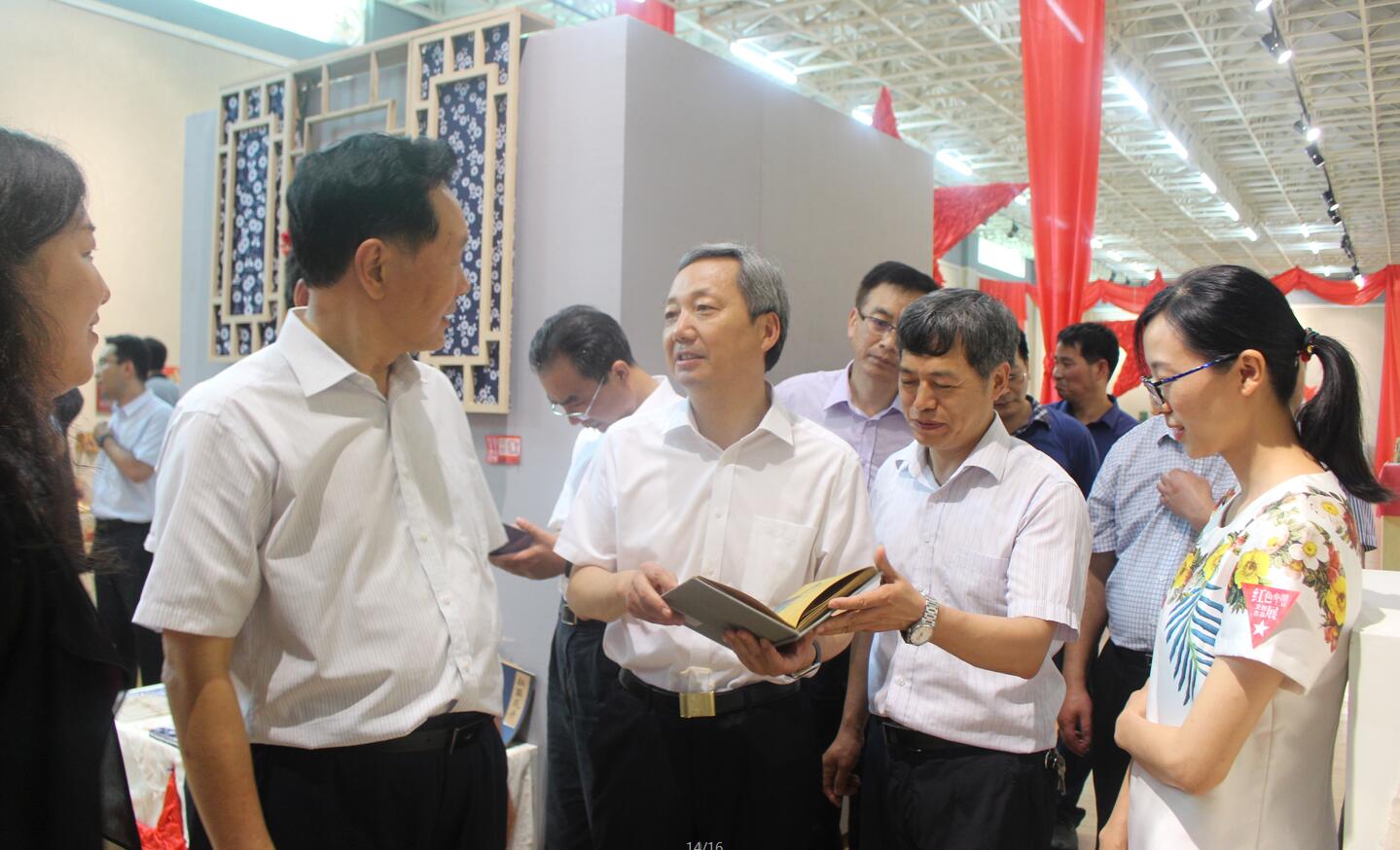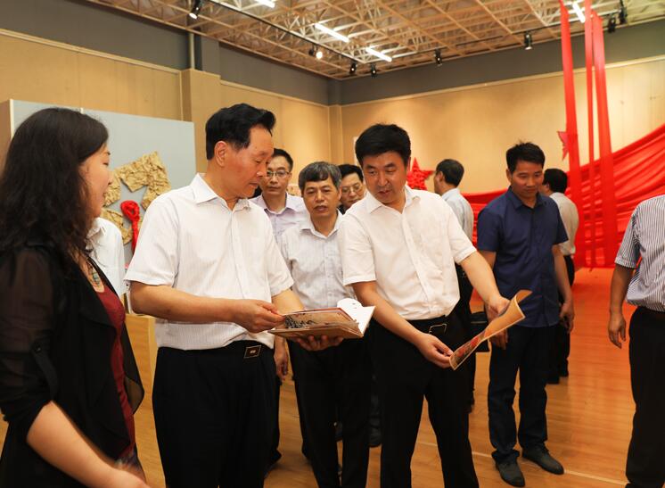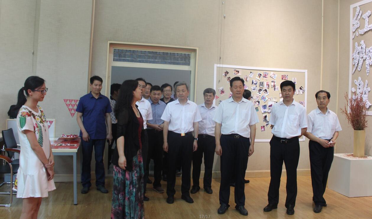 6月23日,省教育厅长朱清孟、副厅长尹洪斌带领厅办公室、发规处、基教一处、基教二处、职成教处、高教处、师范处、学生资助管理中心等部门负责人来beat365官网参观指导'“红色乡土激情文创作品展。信阳市市长尚朝阳、副市长张明春,我校全体校领导和beat365官网领导班子成员以及指导教师全程陪同参观。