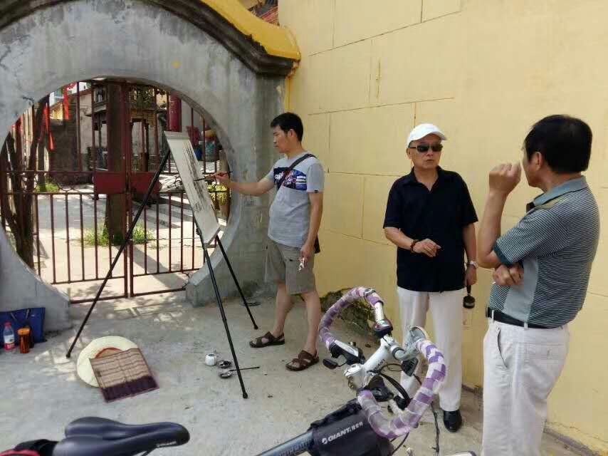 8月14--16日,应潢川县的邀请,信阳师范学院beat365英国官方网站美术创作团队一行十一人赴信阳潢川采风,为创作千里淮河、人文淮河的作品探寻艺术创作素材。潢川南依大别山,北临淮河,自古为豫东南的政治、经济、文化中心。这里不但历史悠久,也是英雄辈出之地,更是“莫道楚乡风物陋,文章屈宋到如今”的人文荟萃之地。是鄂豫皖三省交界处的“金三角”,为重点建设的大别山区域性中心城市。创作团队成员的到来受到了潢川县各级领导的热烈欢迎,并给予了大力的支持和帮助,为beat365英国官方网站美术创作团队的创作采风提供了诸多便利。县政协主席涂白亮、副主席毛建华、文联主席李学海、美术家协会主席陈志立等出席了欢迎会和座谈会,给予了创作团队很大的鼓励。创作团队在县文联、美协的安排和陪同下参观考察了 “黄歇故里”、“光州古城”、“弋阳古镇”、“黄国故城遗址”、“三义观”、“铁旗杆”等地。创作团队成员的感触很深,也很激动,当天下午就开始了采风和写生。