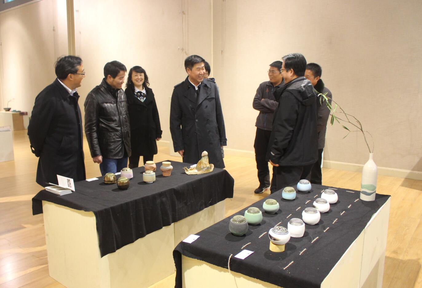 12月21日下午,校长宋争辉,副校长张力、郜火星一行来beat365官网参观青年教师张睿“容·融”陶艺作品展,beat365官网党委书记刘根货,副院长邹东升、张伟、李孝民、涂湘东全程陪同参观,教师张睿陪同讲解设计灵感与创作理念。