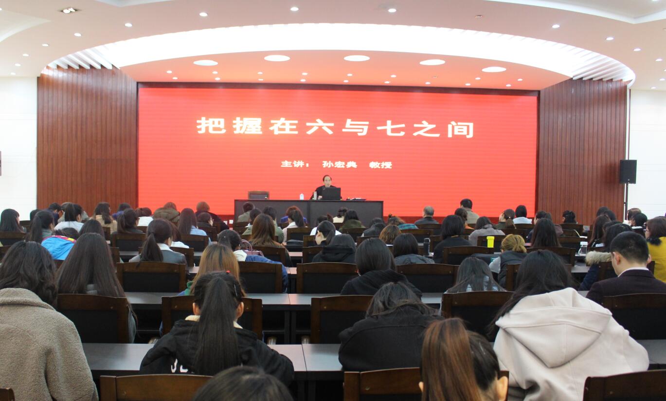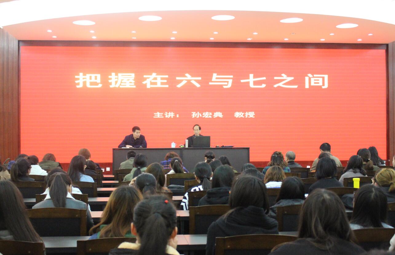 3月9日,应beat365英国官方网站邀请,信阳师范学院原党委书记孙宏典教授在艺术楼一楼报告厅开展题为“把握在六与七之间”的学术讲座。beat365英国官方网站院长邹东升,副院长张伟、涂湘东与三百余名师生共同聆听了讲座,讲座由邹东升主持。