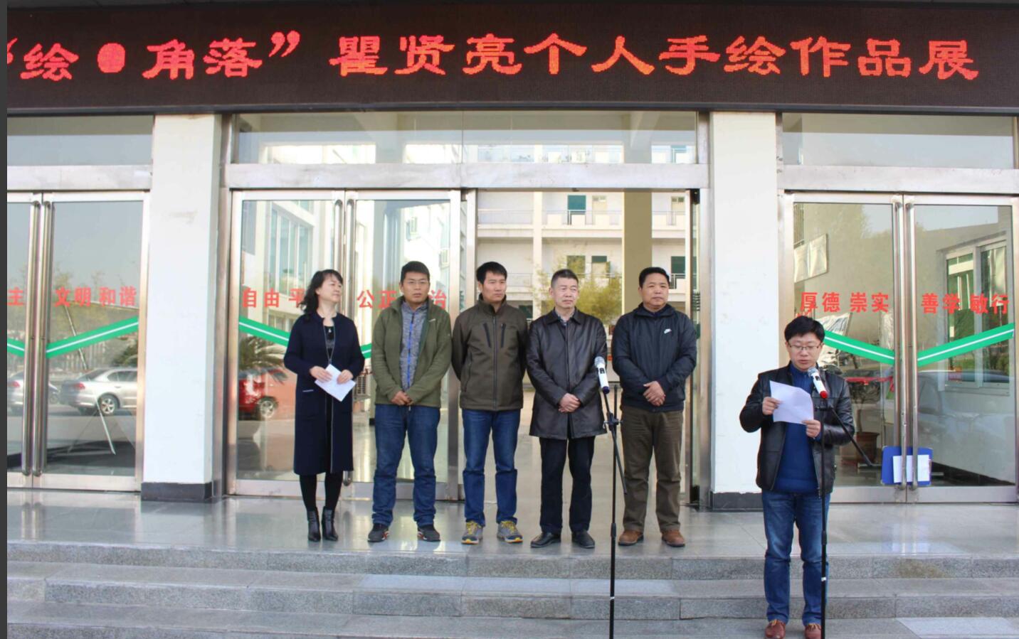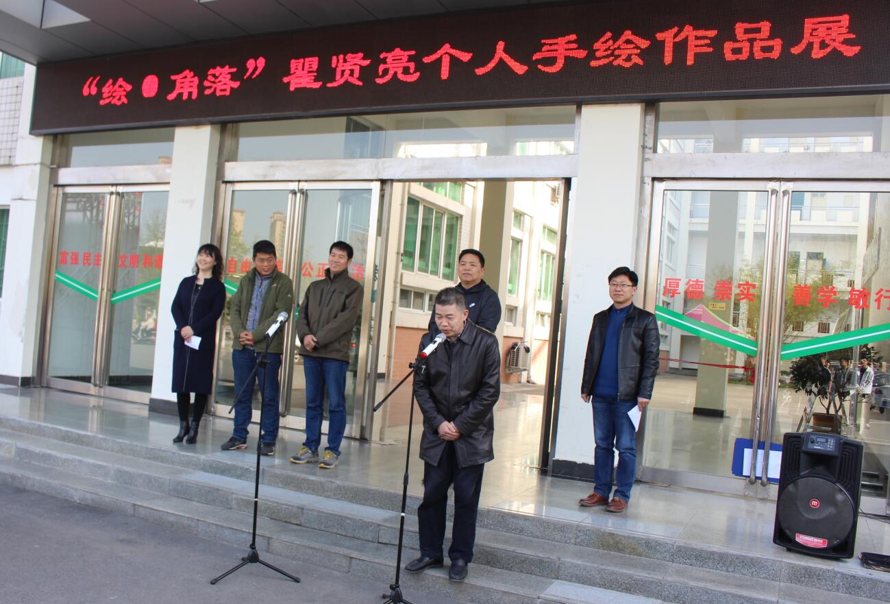 翰墨飘香,丹青溢彩。3月27日,beat365英国官方网站2013级美术学班瞿贤亮同学的“绘•角落”个人手绘作品展于艺术楼前隆重开幕。信阳师范学院教务处处长李宝峰,beat365英国官方网站副院长邹东升、张伟、李孝民、涂湘东,党委副书记杨轶中及百余名师生出席了开幕式。开幕式由杨轶中主持。