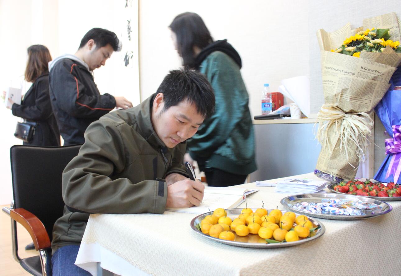 开幕式上,杨轶中首先对瞿贤亮个人作品展的基本情况作了简单介绍。涂湘东致开幕词,她首先介简单绍了beat365官网的基础教育建设工作,希望可以为同学们创造一个优越的学习与创作环境。对瞿贤亮学习期间既踏实练好基本功,又锐意进取、不断创新的精神的表示了赞扬,并寄语同学们要坚持绘画,大胆创作,不断提升自己的文化内涵,加深自己的艺术底蕴。瞿贤亮对beat365英国官方网站大力支持本次展览表示了感激之情,并与同学分享了自己举办个人画展的初衷——以美的方式告别大学生活,有梦想就要坚持。随后李宝峰处长宣布瞿贤亮个人手绘作品展正式开幕。