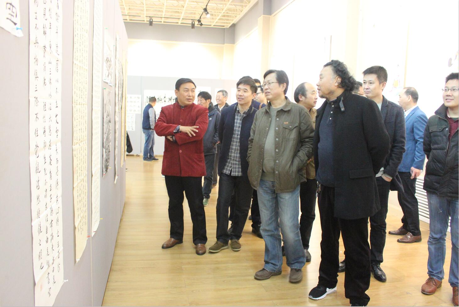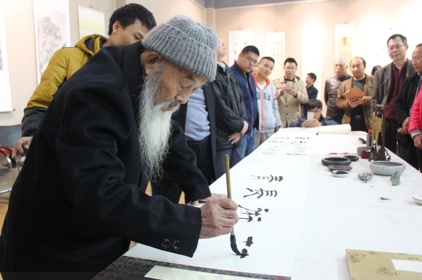 开幕式伊始,杨轶中介绍了此次四校书画作品联展的基本情况。傅泽宇先生致开幕辞,他对青年学生寄予厚望,希望广大学生朋友和书画爱好者能够以此次活动为契机,加强学习,增进交流,共同提高,同时以书画为形式和内容,丰富校园文化活动,传承传统文化。随后黄正连先生宣布第十一届“申城杯”四校书画作品联展正式开幕。 开幕式结束后,全体来宾和500余名师生相继到展厅观展。本届“申城杯”四校书画作品联展以“笔墨纸砚忆江南,流水清风续华年”为主题,以书法和绘画为主要形式,从千余幅参赛作品中评选出近百幅作品展出,在尽显中国传统文化之美的同时,也充分展现出了当代大学生热爱传统文化和积极进取、勇于创新的青春风采。各位嘉宾对此次活动给予了高度评价,并在展厅对学生们进行现场指导,共同书写了10余米长的册页,使同学们现场感受了书法艺术之美。