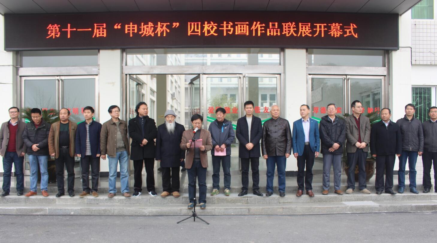 11月13日上午,群贤雅集,翰墨飘香,第十一届“申城杯”四校书画作品联展在艺术楼隆重开幕。著名书法家戴南园、黄正连,信阳市书法家协会主席傅泽宇和信阳市10余位书法家,以及校党委组织部部长于继武、人民武装部部长赵明民、团委副书记朱国朋、beat365英国官方网站党政领导班子以及兄弟院校的师生代表和书画爱好者出席开幕式。开幕式由beat365英国官方网站党委副书记杨轶中主持。