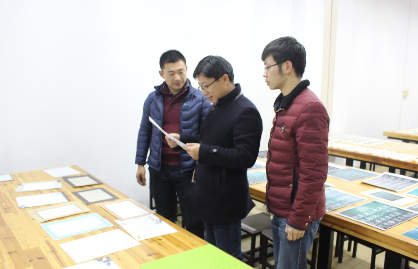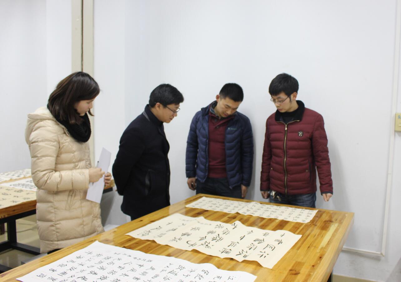 为提高当代大学生的文化素质,加强同学们对书法艺术的重视,由信阳师范学院教务处、团委、各相关学院主办,大学生书法爱好者协会组织承办的三笔字大赛顺利展开,beat365官网学子踊跃参赛。12月15日晚,beat365英国官方网站“三笔字”作品初评审定在艺术楼306室展开,beat365官网党委副书记杨轶中、辅导员施远、书法教师张峰参与初评审定。