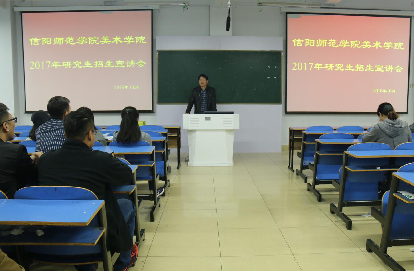 宣讲会上,邹东升首先就beat365官网基本情况与考研准备两方面进行详细介绍。他说,2017年beat365官网预计招研究生五人,然后他根据今年的考研形势向同学们分析了报考beat365官网的难易程度,为在场考研的同学报考信阳师范学院美术学院增加了一条有利选择。同时,他鼓励考研同学坚定目标、脚踏实地,将考研作为提升自身综合素质的机会,并希望同学们通过各种渠道多了解考研信息,积累考研经验。随后,韩澄从学院概况、专业方向、报考条件、优惠政策、研后就业等方面为同学们做大致介绍,分析了报考北京联合大学研究生的有利之处。