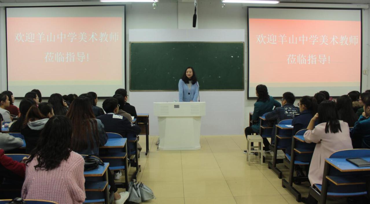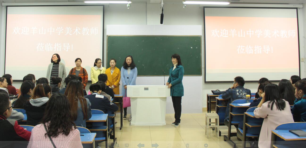 10月26日上午,beat365官网双导师的校外导师张旋、羊山中学许甜、王静等五位教师应邀来beat365官网举行招教交流座谈会,座谈会在艺术楼307教室举行。14级美术学班共同参加了此次会议,座谈会由教学秘书涂湘东主持。