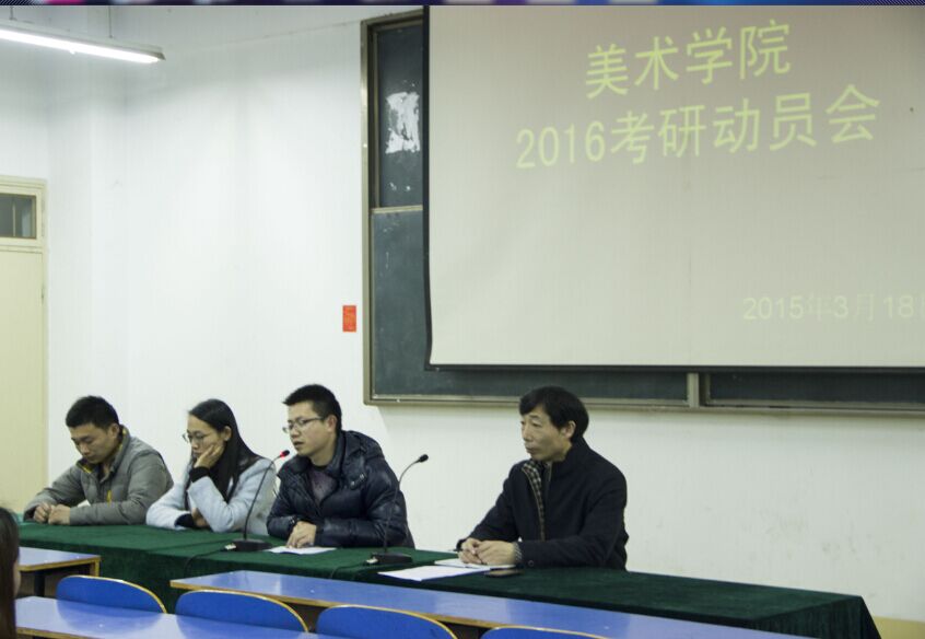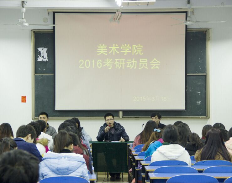 为使大学生明确考研目标,全面备战考研,3月18日,信阳师范学院美术学院在艺术楼307教室举办2016考研动员会。美术学院党总支书记周子良,团总支老师张锐、李娟,张峰以及各年级不同专业学生参加了此次大会。本次交流会由团总支老师张锐主持。