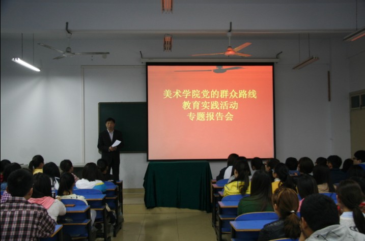 4月18日下午,美术学院在艺术楼308教室举办党的群众路线教育实践活动专题报告会,美术学院师生党员干部近百人参加了此次报告会。