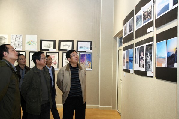 11月5日下午,由校党委宣传部、学工部、教务处、科研处、校团委、校学生会、社团联合会主办,美术学院承办的第十四届大学生科技文化艺术节“丹青墨韵” 书法、篆刻、摄影、美术作品大赛决赛参赛作品在艺术楼展厅展出。校党委副书记余作斌,学生处处长岳宗德,人民武装部部长赵明民,教务处处长李宝峰,科研处处长余本海,校团委书记耿劲松、副书记武治国,宣传部副部长朱四倍,美术学院党总支书记周子良、院长刘根货、副院长张伟、党总支副书记李孝民、副院长邹东升以及部分学院的党总支副书记、团总支老师一同参观了展览,展览吸引了1000余名同学前来参观。