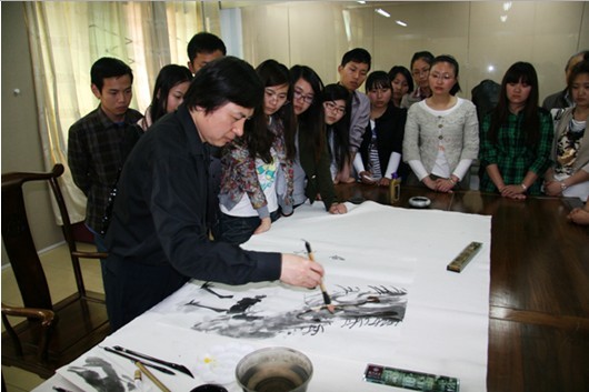 4月23日,应我校美术学院邀请,陕西师范大学美术学院曹桂生教授来我校讲学,在艺术楼报告厅作了题为“中国画的艺术与审美”的学术报告。报告由美术学院副院长汪俊林主持。报告中,曹桂生教授系统讲授了中国画艺术概说、中国画的审美取向、中国画的意象特征等理论知识。曹桂生教授授课声情并茂,使用丰富翔实的图文资料,不时赢得师生阵阵掌声。报告现场,他和师生探讨交流国画的创作技巧、方法等问题,向同学们讲述自己在创作中的一些体会。曹桂生教授还在美术学院临摹室现场挥毫,为同学们示范习作技巧。曹桂生,陕西师范大学美术研究所所长、陕西师范大学美术学院教授、硕士研究生导师、中国美术家协会会员;曾先后发表学术论文50余篇,出版专著1部,教材5部;发表美术作品百余幅,多次出版或参加美术作品展并获奖。
