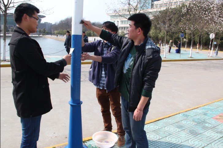 3月5日下午,利用自身专业优势,美术学院团总支、大学生艺术设计协会在全校范围内开展“践行雷锋精神、美化校园环境,建设和谐校园”活动。在逸夫楼荷塘美术学院党总支书记周子良、副书记李孝民亲临现场指挥绘画专业同学,用手中的画笔为已破损的墙绘重新勾勒出优美的线条,染上唯美的色彩,建成一面靓丽鲜艳的荷文化墙。此外美术学院还组织青年志愿者、学生党员维护清理全校的路灯杆和道路标示牌。