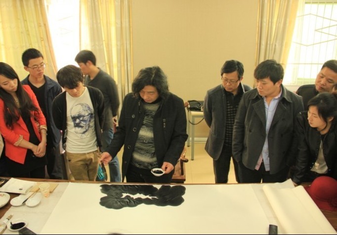3月7日,美术学院特邀知名画家、榆林学院教授梦鸿为该院国画专业学生上示范课,该院院长刘根货、副院长张伟、邹东升等教师代表与国画专业40余名同学一同观摩。