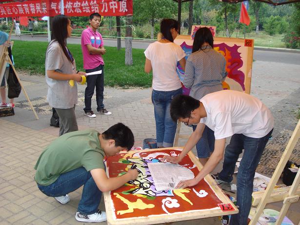 5月28日—29日,由美术学院邱星、孙超、靳凤、黄铭雅4名同学创作的涂鸦作品《红动中原》、《中原崛起》晋级省第十三届大学生科技文化艺术节校园涂鸦大赛决赛,赴郑州大学参加了此项赛事的现场角逐。