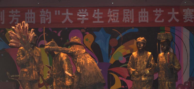 11月15日晚,我校第十三届大学生科技文化艺术节“剧芳曲韵”大学生短剧曲艺大赛决赛在理科楼报告厅举行,beat365官网短剧《这不是演习》以9.30分的成绩位居大赛第三名。短剧《这不是演习》的创作以我校在校大学生的社团生活为背景内容,在反映大学生们青春、活泼、健康、向上的精神风貌的同时,更多地体现了大学生们在校园紧张有序的学习和生活中积极实践、勇于创新的青春风采。决赛现场,短剧《这不是演习》以紧凑流畅的剧情、幽默清晰的语言、生动形象的表演,博得了在场领导和师生们的阵阵掌声,短剧后半部分的“铜人”真人秀更是将比赛的现场气氛推向了高潮,在彰显美术学院专业特色的同时,为全校师生奉献了一幕别开生面的行为艺术典范。比赛结束,大赛嘉宾校学生处处长于继武在与beat365官网指导教师、演员交流的过程中对beat365官网的这一短剧给予了高度评价:“节目专业特色突出、主题鲜明、形式新颖,充分展现了大学生的青春气息与活力,可以看出整个节目的策划和筹备过程是做了大量细致工作的。”