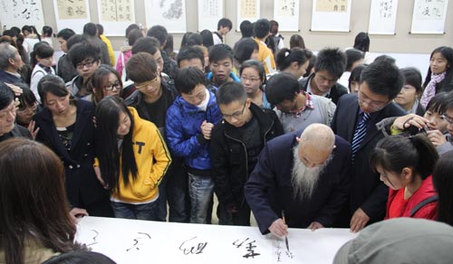 2011年“申城杯”信阳大学生书画展开幕式现场
