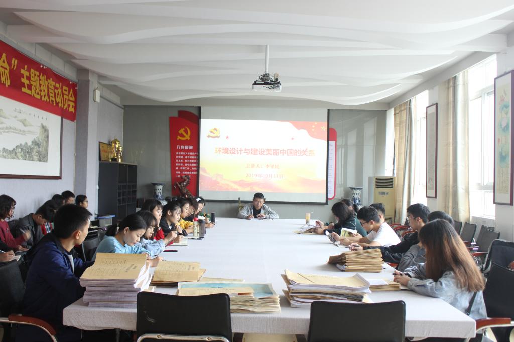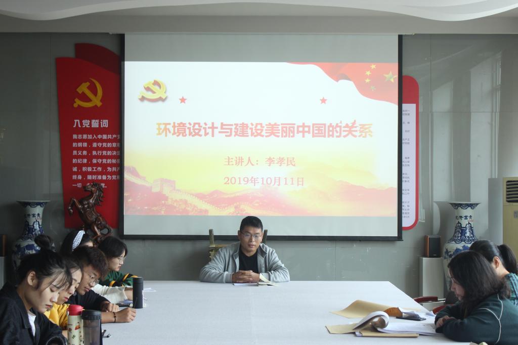 10月11日,beat365官网副院长李孝民在艺术楼二楼会议室为学院师生党员作了题为 “环境设计与建设美丽中国的关系”的专题党课。beat365官网教工二支部和艺术设计学生第二党支部党员和发展对象共同聆听了此次党课。