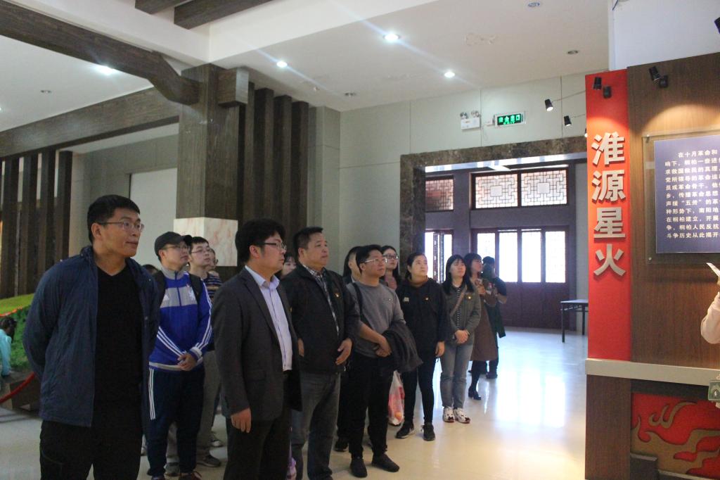 桐柏革命纪念馆位于桐柏县城南叶家大庄,是全国百家红色旅游经典景区之一、河南省爱国主义教育基地。展馆内收集了桐柏老区在国内革命战争、抗日战争、解放战争、社会主义革命和建设时期的有关史料,记录了革命烈士为谋取人民幸福抛头颅、洒热血的丰功伟绩,展现了桐柏人民坚韧不拔的精神风貌。该馆主展厅分为"淮源星火"、"红旗漫卷"、"抗日烽烟"、"中原伟业"、"桐柏霞光"五部分。党员们怀着崇敬的心情参观了南阳桐柏革命纪念馆。进入展馆,一件件历经沧桑的文物资料、一张张定格历史的珍贵照片、一幕幕展现风云变迁的历史影像,让大家备受震撼和鼓舞。在讲解员的带领下大家认真聆听,不时驻足端详,详细了解展品背后的故事,重温党的光辉历史,接受了革命传统教育,更加深入直观地了解到先烈们所经历的艰苦岁月和那种不畏艰苦、乐于奉献的革命精神。