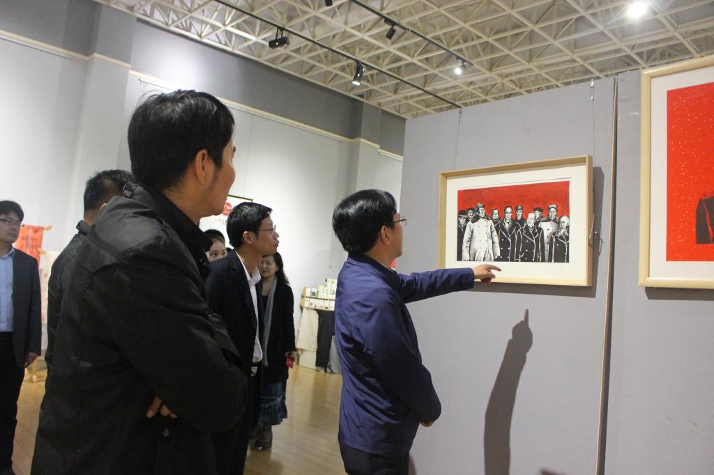 10月29日,信阳市委宣传部副部长许书动一行莅临beat365官网参观了“追寻总书记足迹 弘扬大别山精神”红色作品展。beat365官网党委书记朱四倍,副院长邹东升、张伟全程陪同。