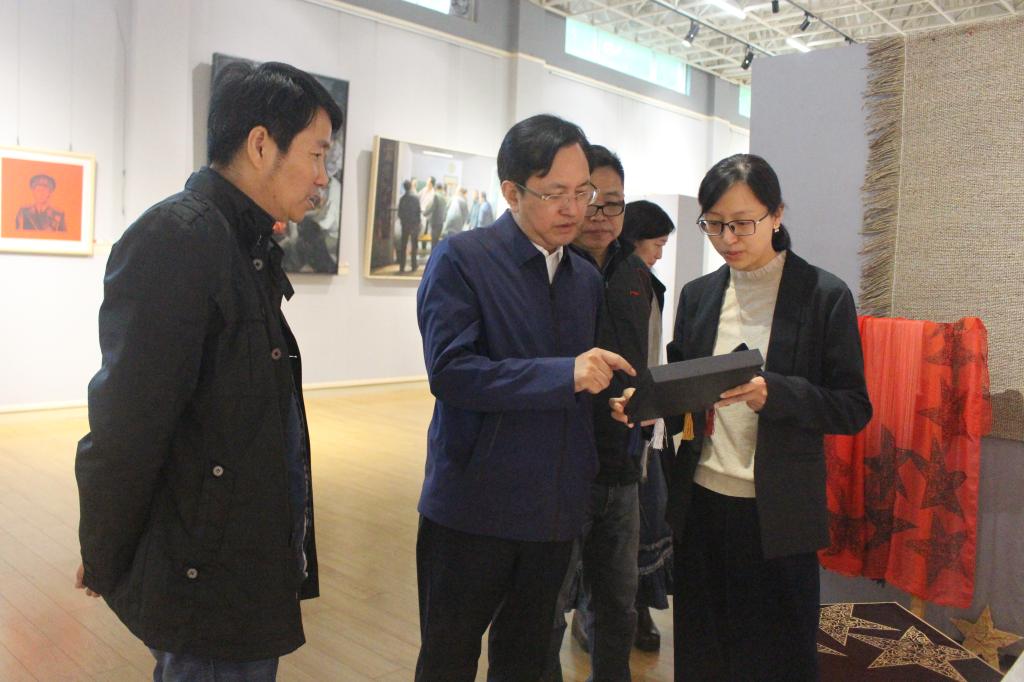 参观过程中,邹东升详细介绍了本次展览所展出的国画、油画、版画、漆画、陶艺、设计等作品,对其创作来源及创作手法进行了具体讲解,并与参观人员进行亲切的交流。张伟重点介绍了本次设计展的产品设计版块,展望了大别山红色文化设计产品的发展,表明了beat365官网重视文化与设计相结合的专业方向。许书动对此次“追寻总书记足迹 弘扬大别山精神”红色作品展给予了很高的评价,他指出特色设计作品有了一定的文化投入,势必会促进文化信号的累积,提升设计产品的价值,希望beat365官网继续发扬大别山红色文化,进一步加强专业水平和学科建设,推动信阳大别山红色文化经济链条的快速发展。