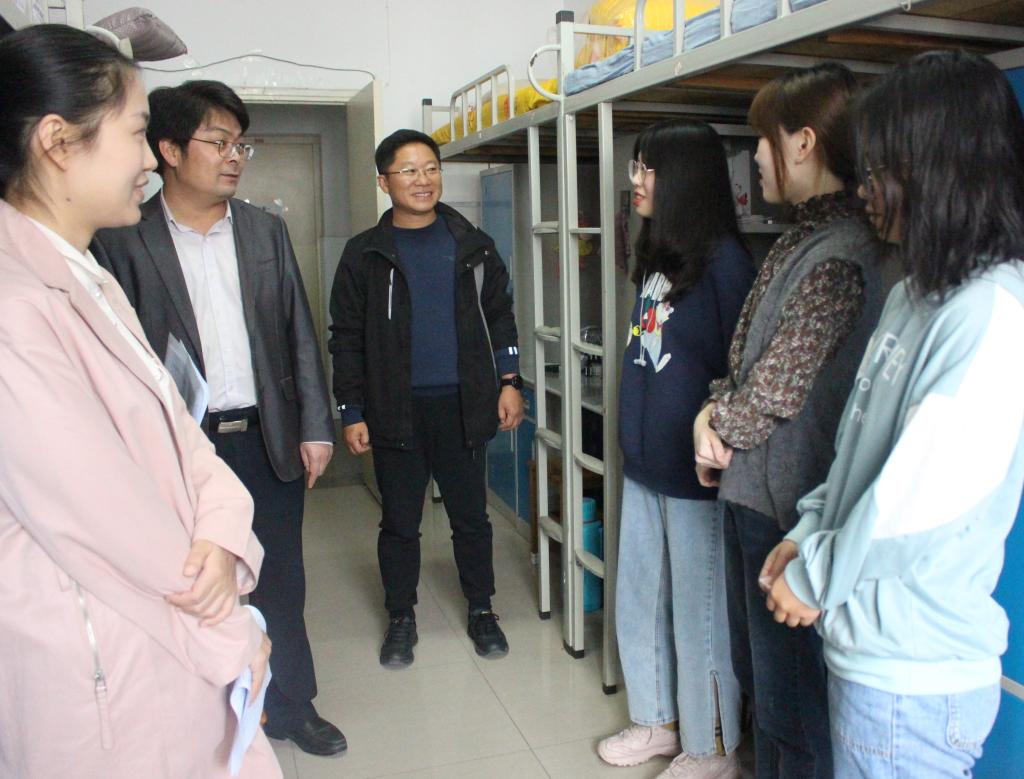为了增进beat365官网领导老师与新生之间的感情。10月10日,beat365官网党委书记朱四倍,党委副书记杨轶中,新生班主任饶海虹、胡霁芳以及新生班助一同来到宿舍看望慰问新生。