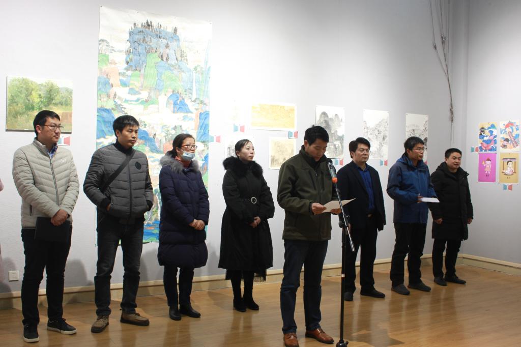 开幕式上,邹东升简要介绍了本次展览的基本情况及学院“开门入室”育人模式方案,他指出,“开门”是指弘扬中华美育精神,办好美术育人工作,邀请校外名家、传统艺人走进校园,开设讲座,拓展渠道,夯实平台,发挥艺术名流、文艺大家的引领作用;“入室”是指成立“教授、博士”和党员名师工作室,发挥专业人才的带动作用和教师党员的先锋作用,与学生面对面交流、对话,搭建师生共情协同育人机制。他鼓励师生共同努力,充分利用各类文化资源,构建教与学的共同体,不断提升育人效果。