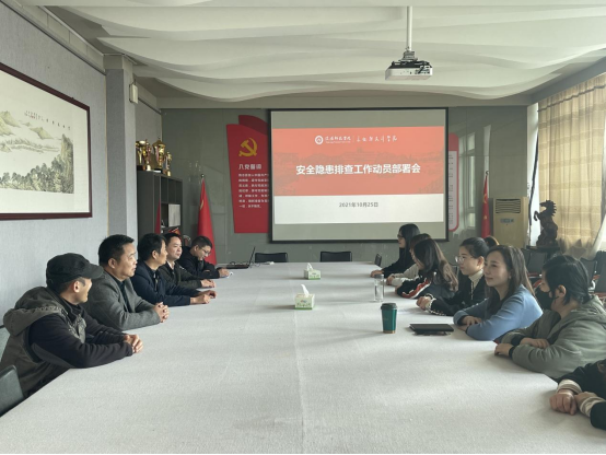 10月26日下午,学院在会议室204召开学生安全隐患排查工作推进会,学院党委副书记周刚向全体教职工传达了学校相关通知文件,对安全问题进行了再强调,要求全体教职工充分认识到做好当前学生安全防范工作的重要意义,进一步强化责任担当意识,密切关注学生思想动态,及时发现安全隐患,推进学院安全隐患排查工作做细做实,确保各项工作隐患防患于未然。