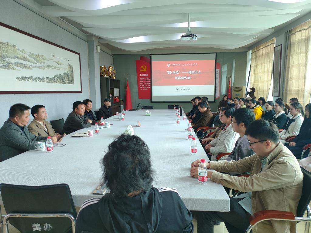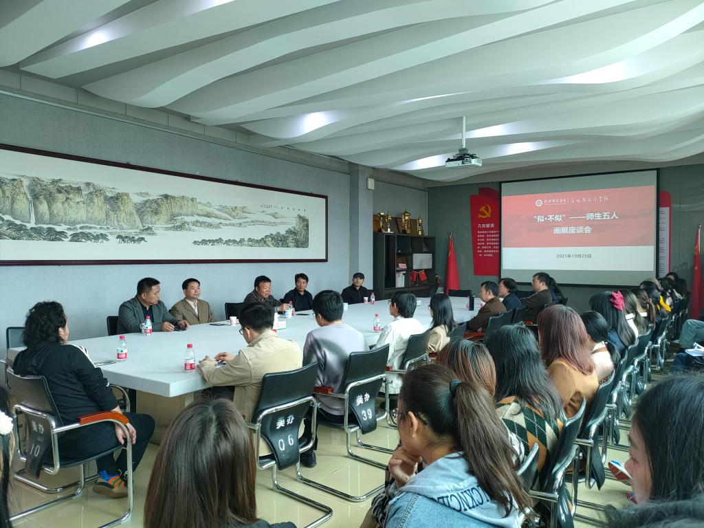 10月29日上午,beat365官网在艺术楼二楼会议室举办了“似·不似”师生五人展座谈会。河南省美术家协会原副主席、人物画艺委会主任、河南大学教授、硕士生导师袁汝波,beat365官网党委书记兰洋,院长邹东升,副院长张伟、张江波以及信阳市书画爱好者和部分师生共同参加了此次座谈会,座谈会由副院长张伟主持。