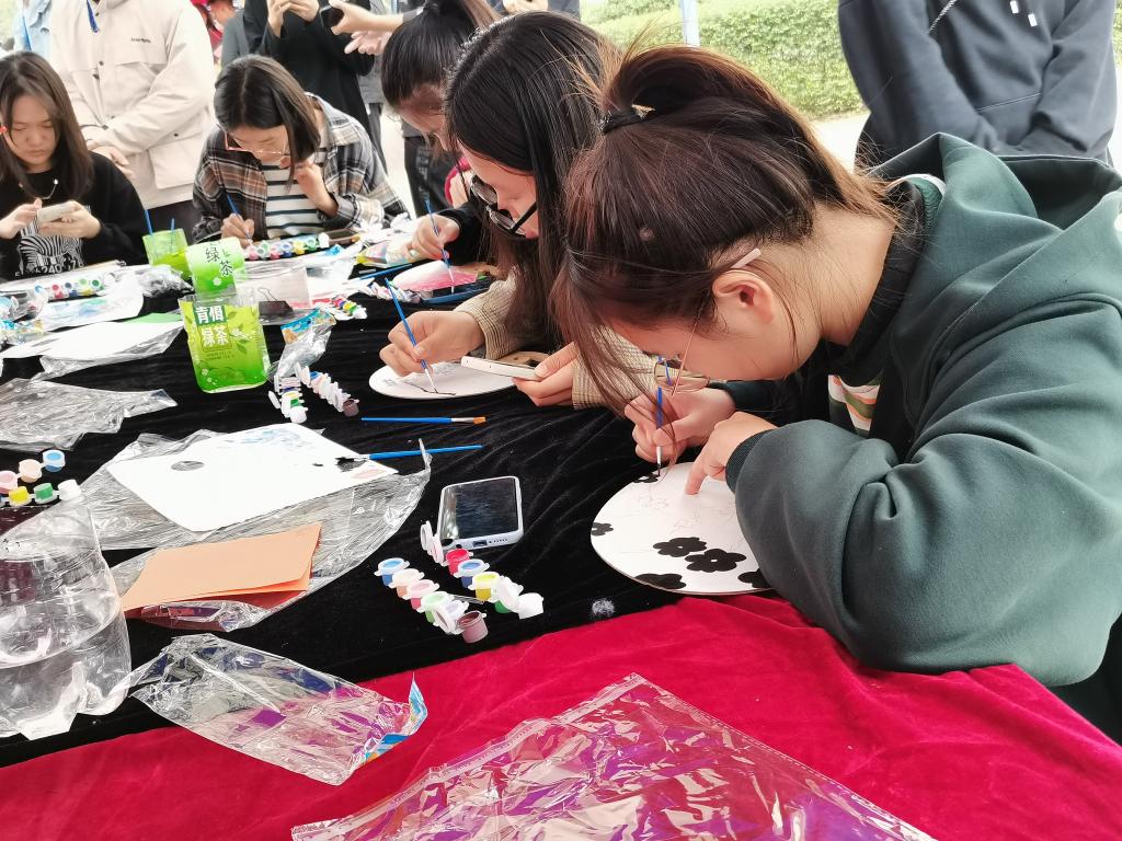 此次活动热闹非凡,参与活动的同学有序排队登记报名,在工作人员的引领下入座开始创作。同学们紧紧围绕“护航青春成长,礼赞建党百年”的主题,用认真仔细的态度绘画纸扇,描绘青春,描绘自己的成长思维,庆祝建党一百周年。活动进行中,会将优秀作品挂在外围进行展示,不少过路学生欣赏拍照。参加活动的同学在完成作品以后不仅可以进行抽奖活动,还可以与老师同学进行绘画交流,进一步解读作品内容。并且学生可向老师了解一些心理健康知识,学习如何缓解压力,释放不良情绪,开心生活。
