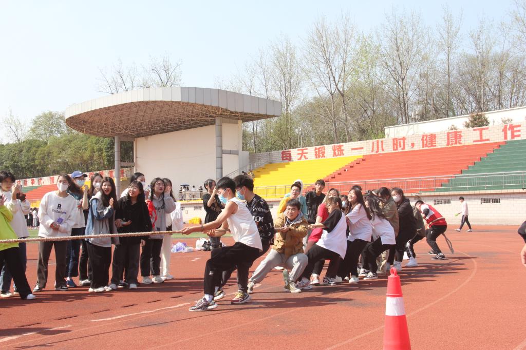 活动伊始,由胡霁芳致开幕辞,胡老师强调本次活动旨在通过一系列团体心理辅导相关的游戏,使同学们能够培养合作精神,增进组织归属感。与传统的运动会不同,本次运动会将竞技与娱乐相结合,着重同学们的参与和合作。趣味运动会上的袋鼠跳跳、两人三足、拔河等比赛项目不仅是团队精神的良好体现,而且兼顾了趣味性和互动性,因此受到了同学们的热烈欢迎。在袋鼠跳跳跳环节,哨声一响,四位同学抓紧袋子同时向前跳,健步如飞,争分夺秒,大家的欢呼声充满着校园。