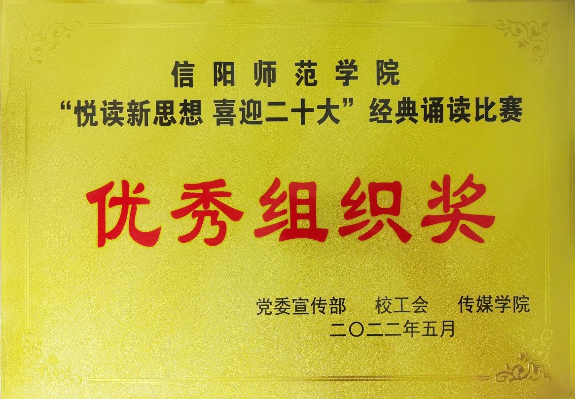 5月31日,由信阳师范学院党委宣传部、校工会、传媒学院共同举办的“悦读新思想喜迎二十大”教职工经典诵读比赛在传媒学院多功能演播厅成功举办。学校党委副书记、工会主席王文臣出席活动,学校相关职能部门、参加比赛的师生选手共同观看了比赛。