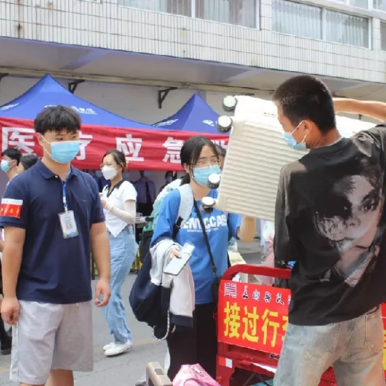 9月11日至12日,beat365官网迎新工作小组在信阳东站、校园南门、人文楼西侧、新生公寓26号楼设置新生报到点,并安排迎新志愿者协助新生搬运行李,完成报到登记。迎新工作人员热情负责,为新生介绍入学相关事宜、分发物资、针对新生提出的问题耐心答疑、帮助他们搬运行李,并积极介绍校园环境和生活经验,引导学院新生顺利入校。